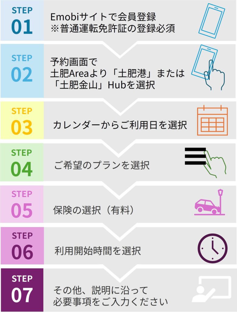 ※Emobiを初めてご利用される方は、予約時に会員登録(無料)が必要です。