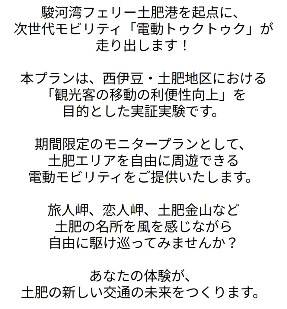 あなたの体験が、土肥の新しい交通の未来をつくります。